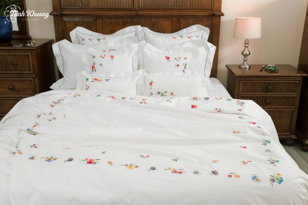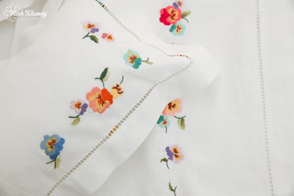 Và để giấc ngủ trưa trở nên trọn vẹn, không thể thiếu một không gian thoải mái. Set bọc mền, ga, gối thêu tay hoa Pensée của Ninh Khương chính là lựa chọn hoàn hảo: