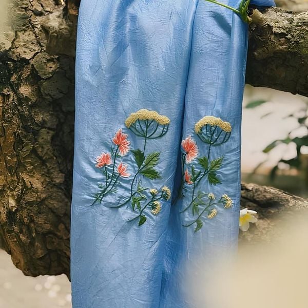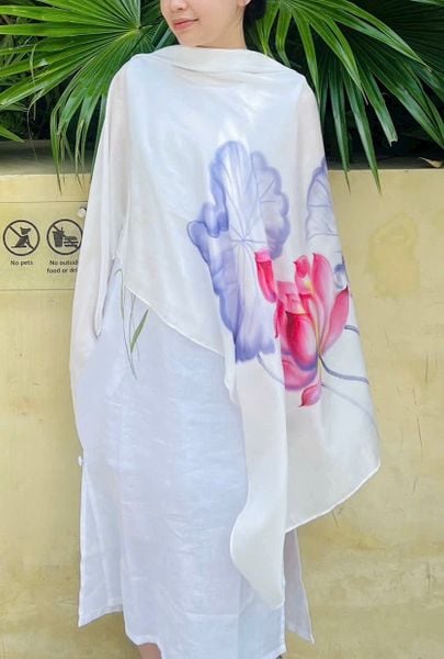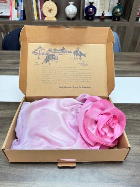 Lụa – chất liệu mềm mại, cao quý – tượng trưng cho sự mềm mỏng nhưng mạnh mẽ, vừa dịu dàng, vừa đầy bản lĩnh như chính hình ảnh người phụ nữ hiện đại. Khi kết hợp cùng các họa tiết thêu tay hoặc vẽ tay thủ công, chiếc khăn lụa không còn là món đồ dùng thường nhật, mà trở thành tặng phẩm nghệ thuật đầy giá trị.
