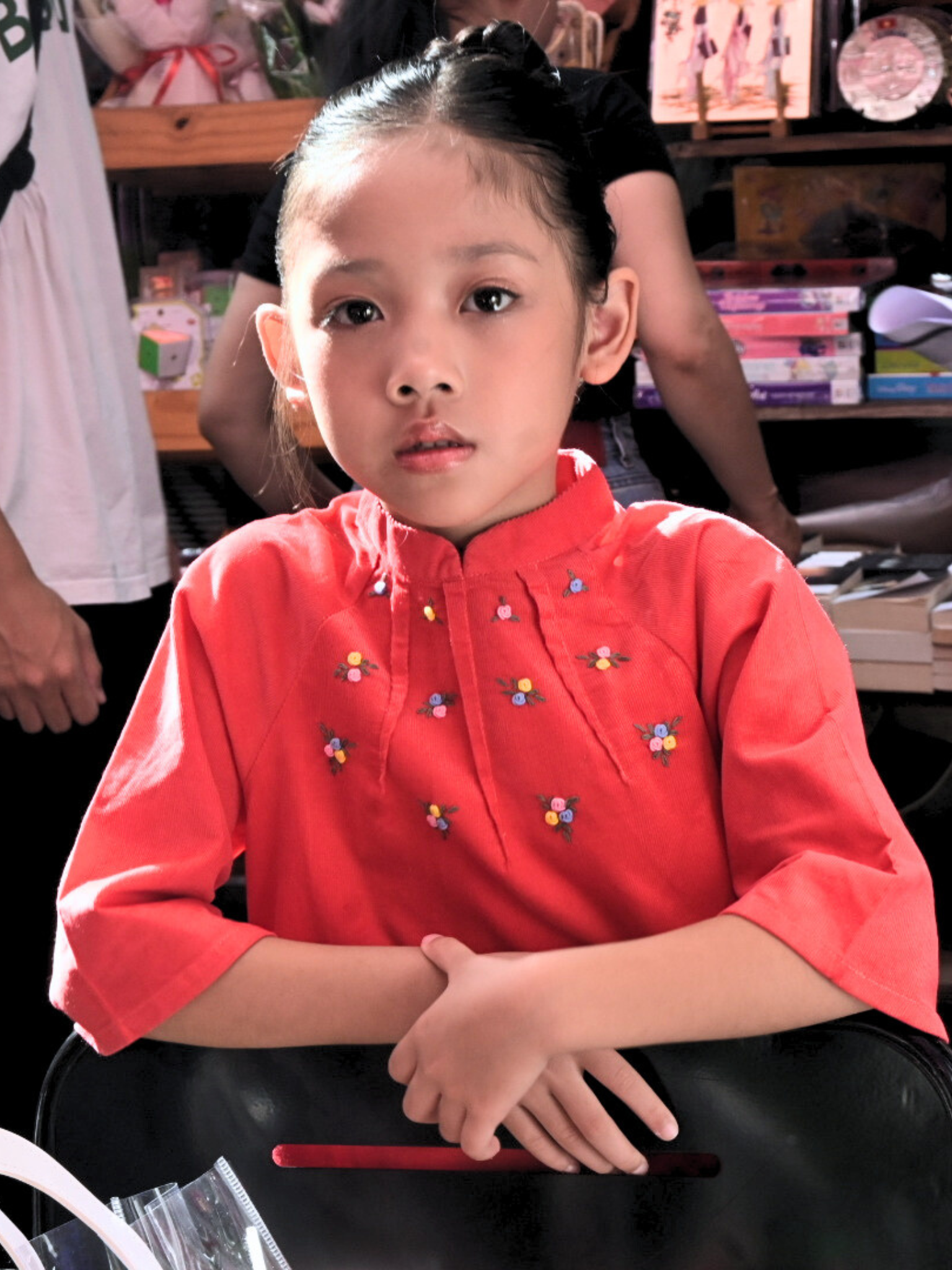 Chiếc áo dài xinh xắn cho bé sẽ giúp bé nổi bật hơn trong những dịp đặc biệt. Chất liệu nhung sang trọng nhưng không hề gây nóng hay kích ứng da bé.