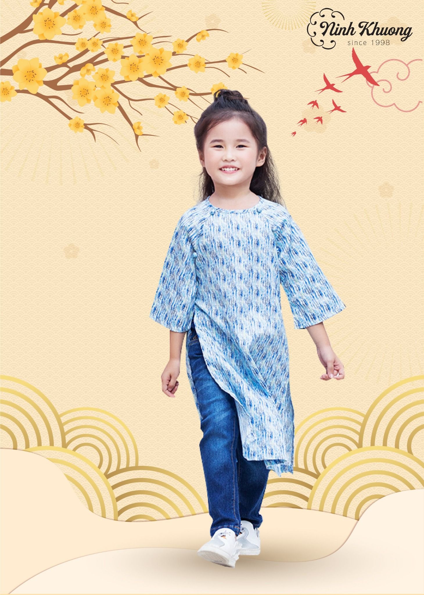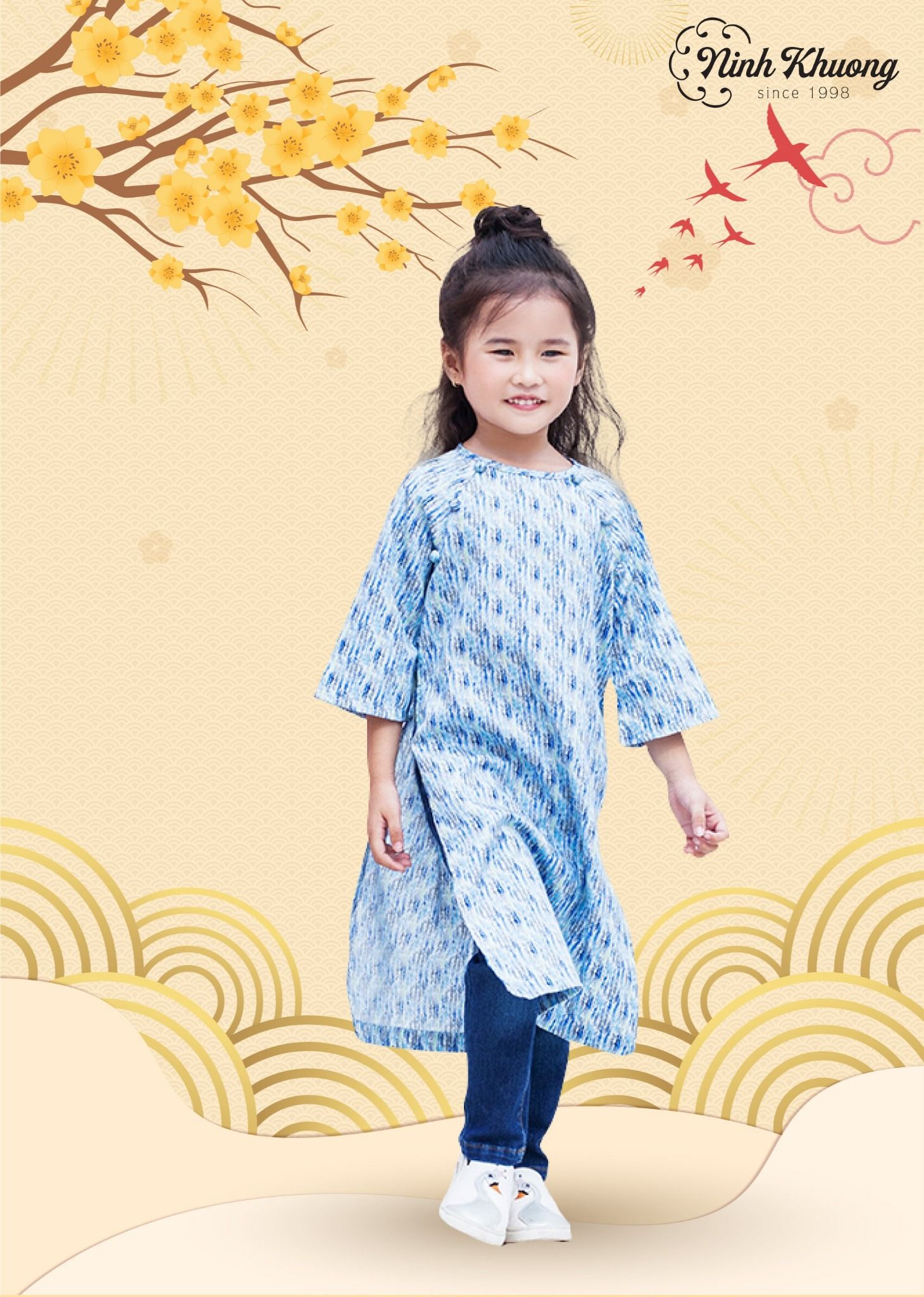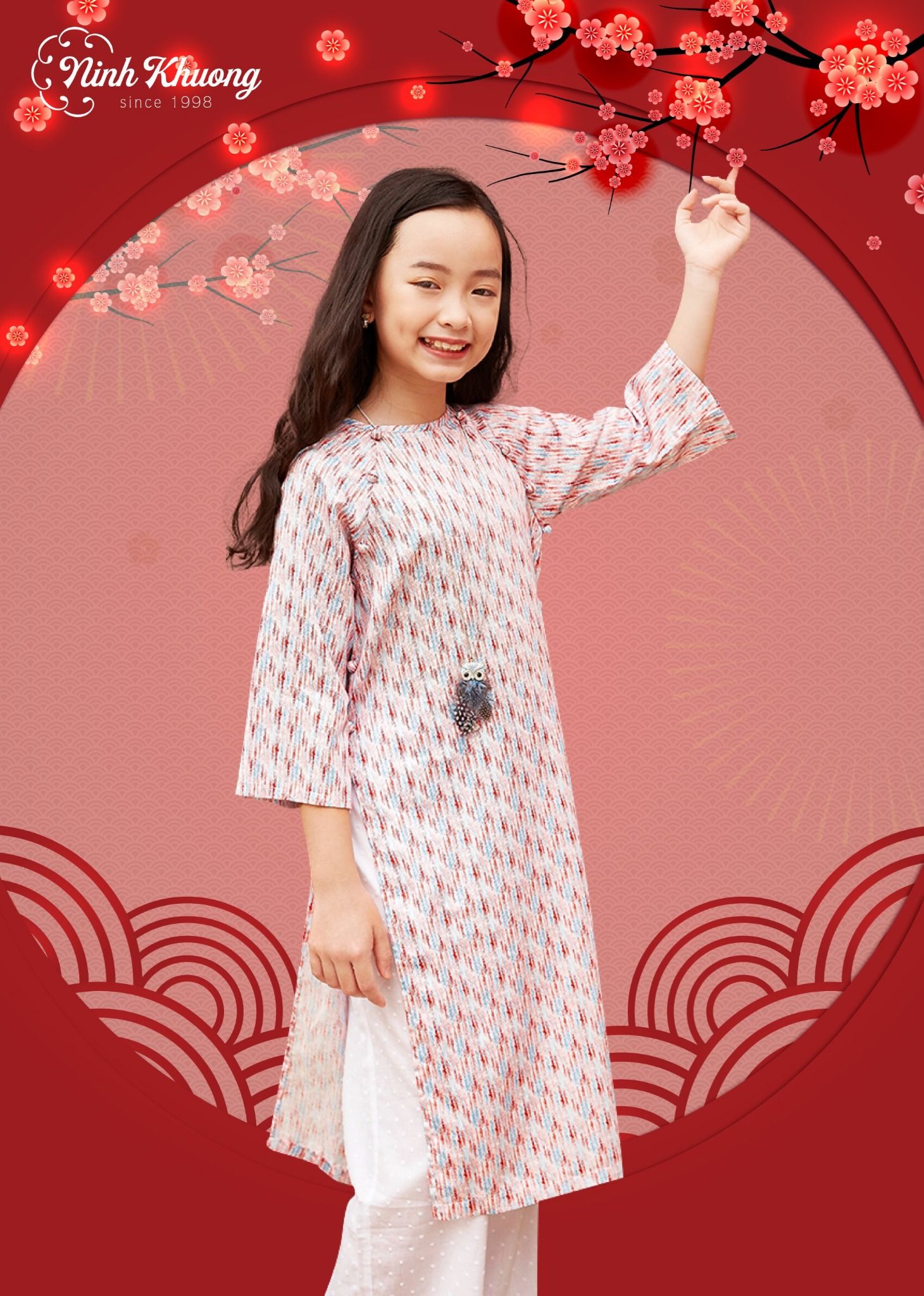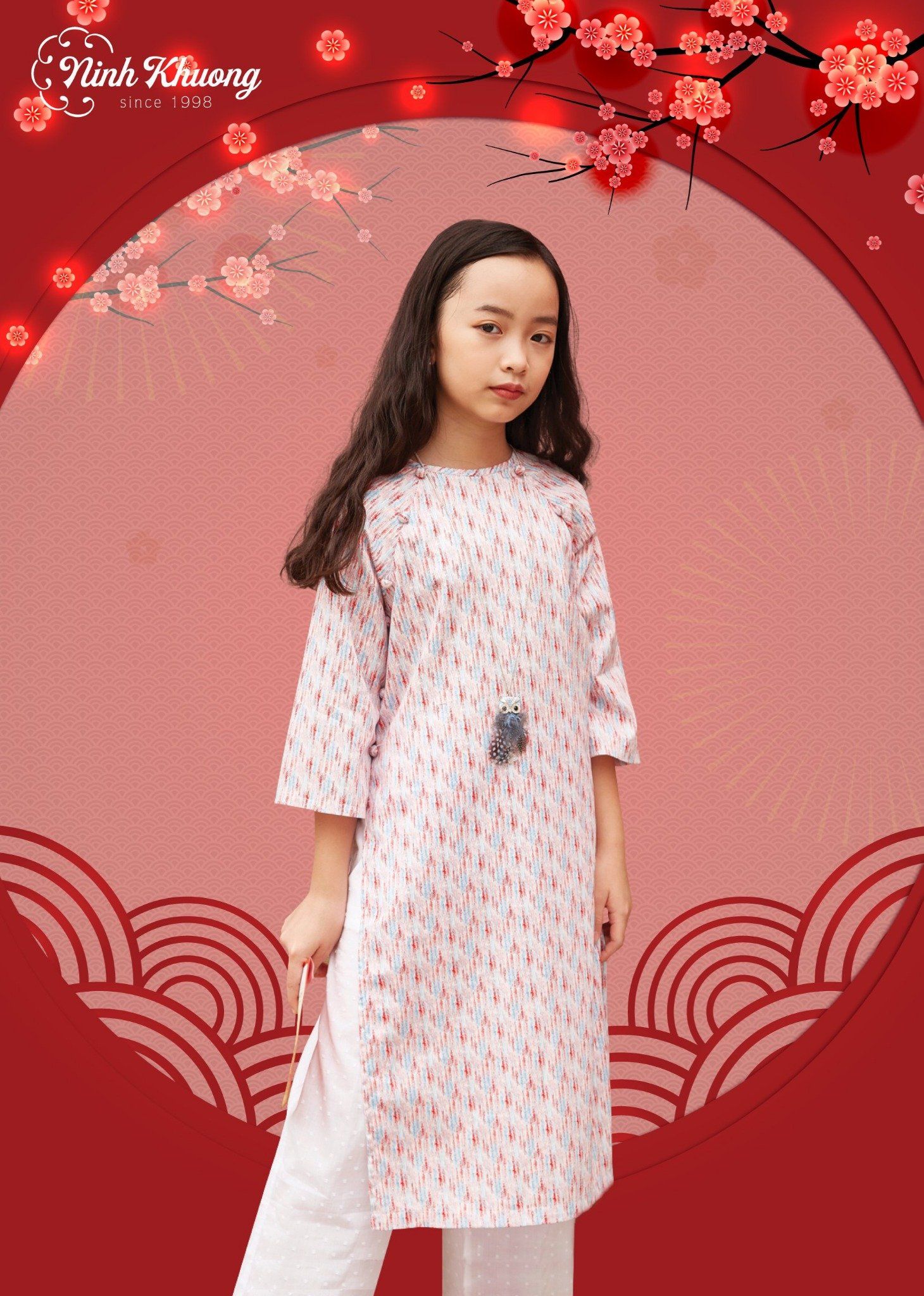 - Áo dài nút bọc tròn bé gái