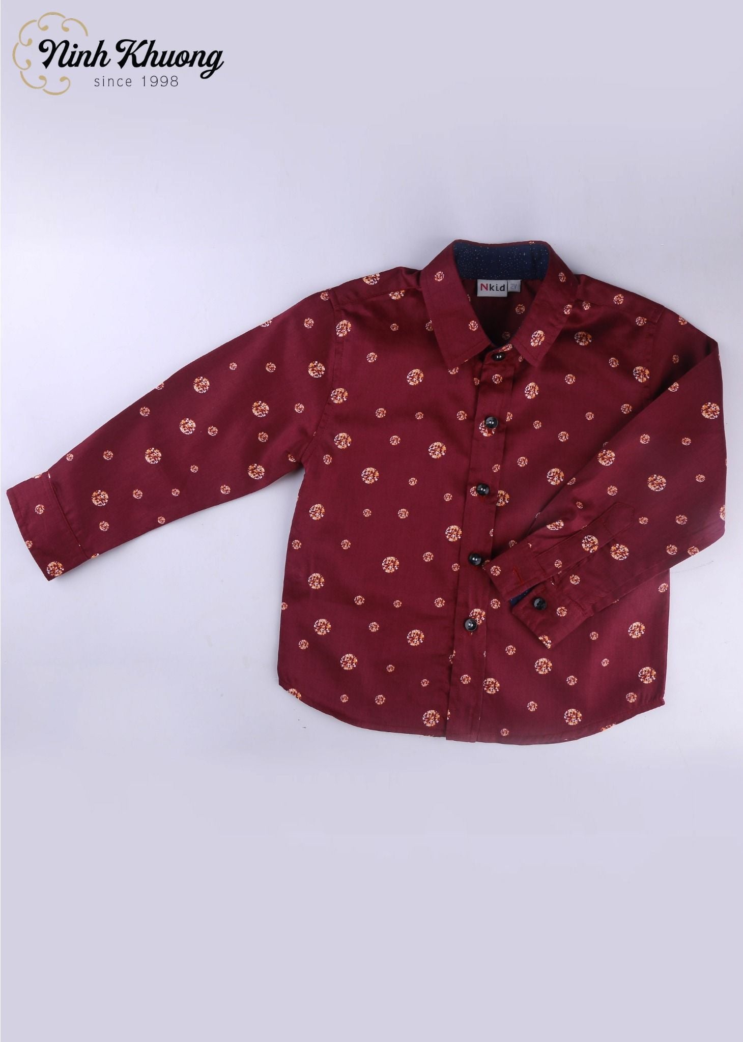 The long sleeve shirt is designed with 100% cotton fabric, featuring contrasting colored fabric trim inside the collar and cuffs, creating a perfect shirt for kids.