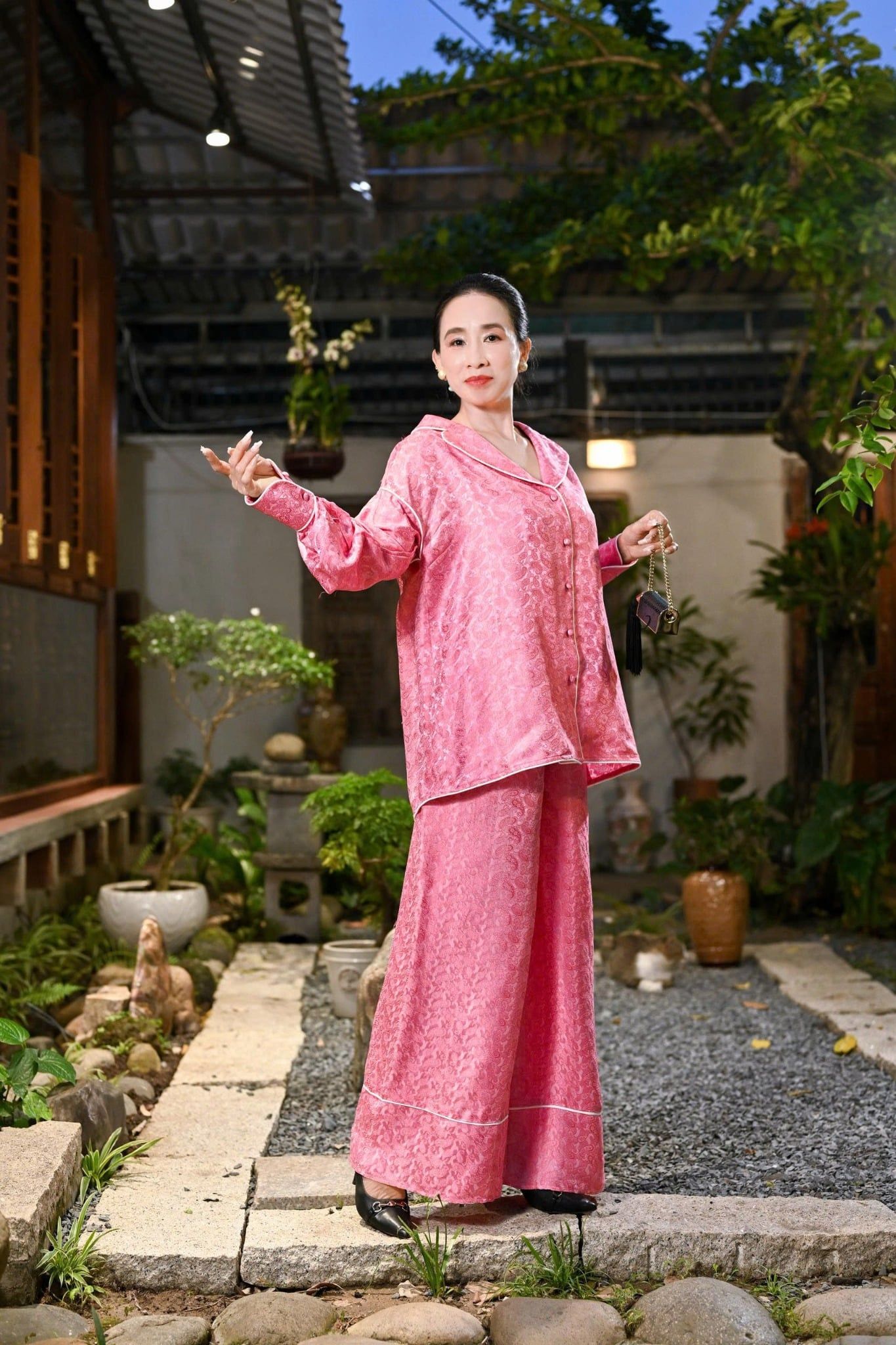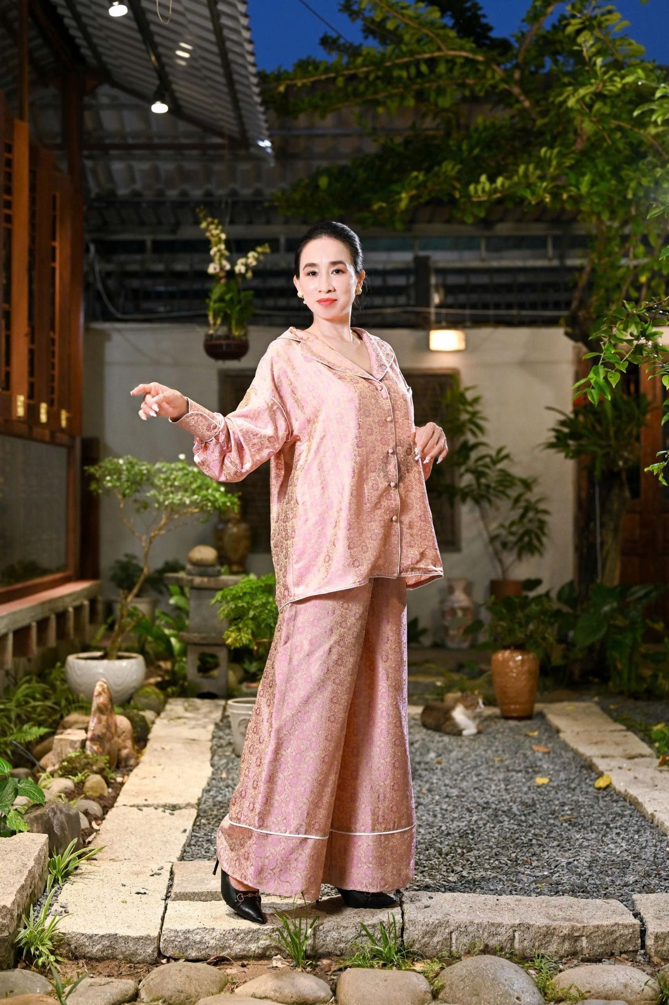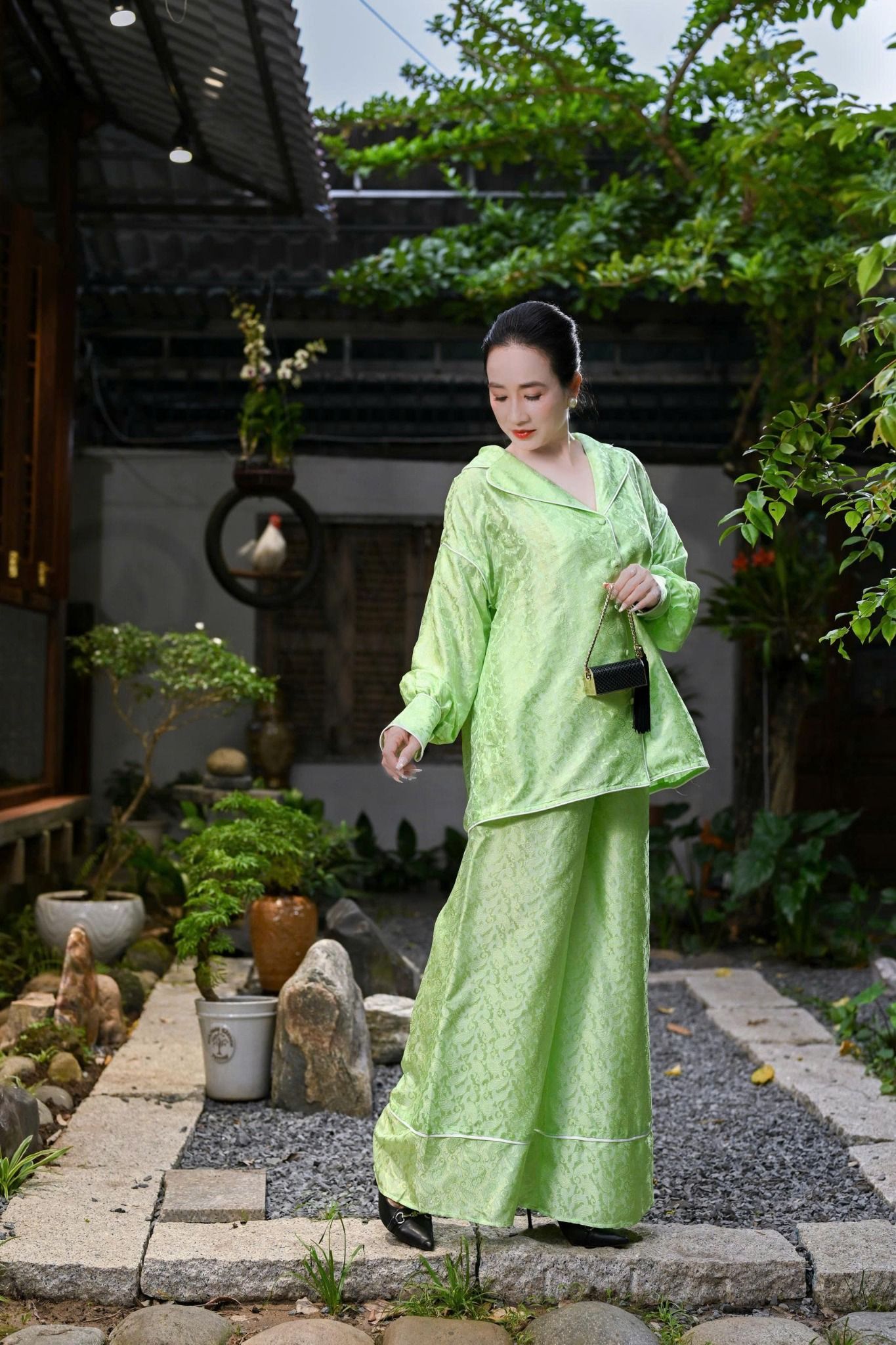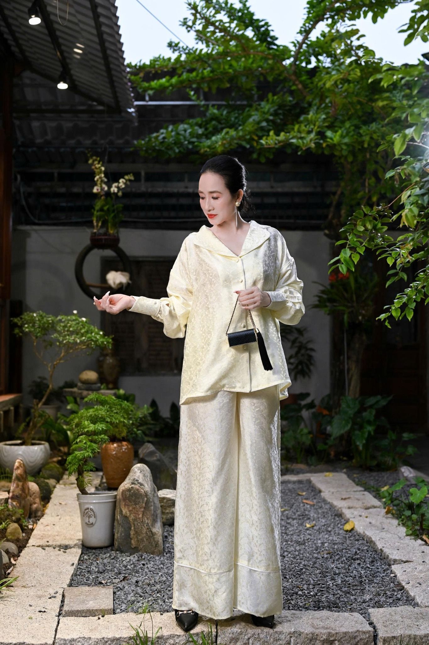 Đắm chìm trong sự thoải mái và sang trọng với Bộ Lụa Áo Sơ Mi Quần Suông tại Ninh Khương. Được sử dụng vải lụa cao cấp, mang lại vẻ ngoài óng ả. Từng đường may mũi chỉ được hoàn thiện tỉ mỉ để tôn lên vẻ đẹp tự nhiên và duyên dáng của người phụ nữ. Thiết kế áo sơ mi form rộng cùng với quần suông thẳng dài tạo giúp che khuyết điểm và tạo nên dáng vẻ thon gọn trong mọi chuyển động.