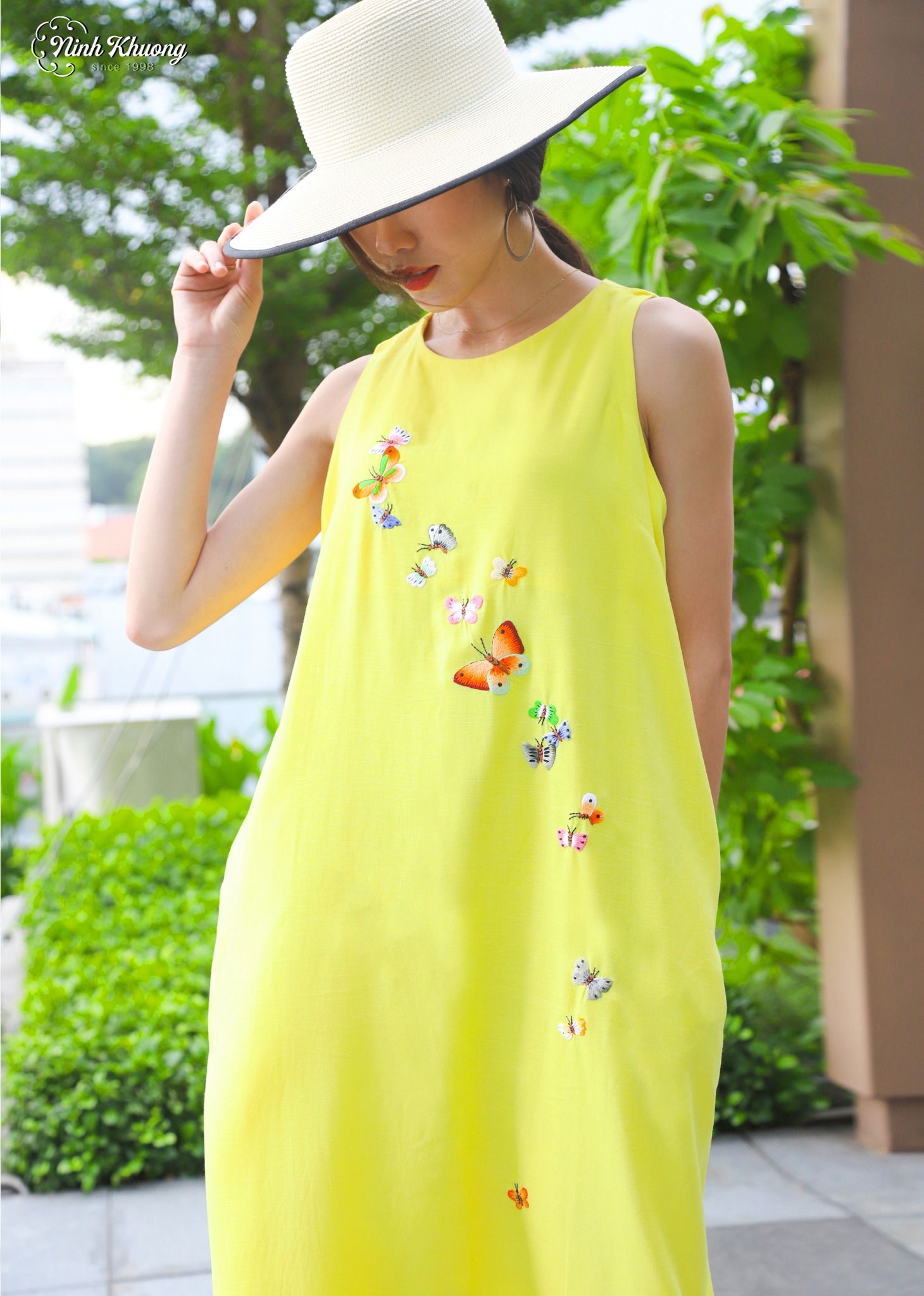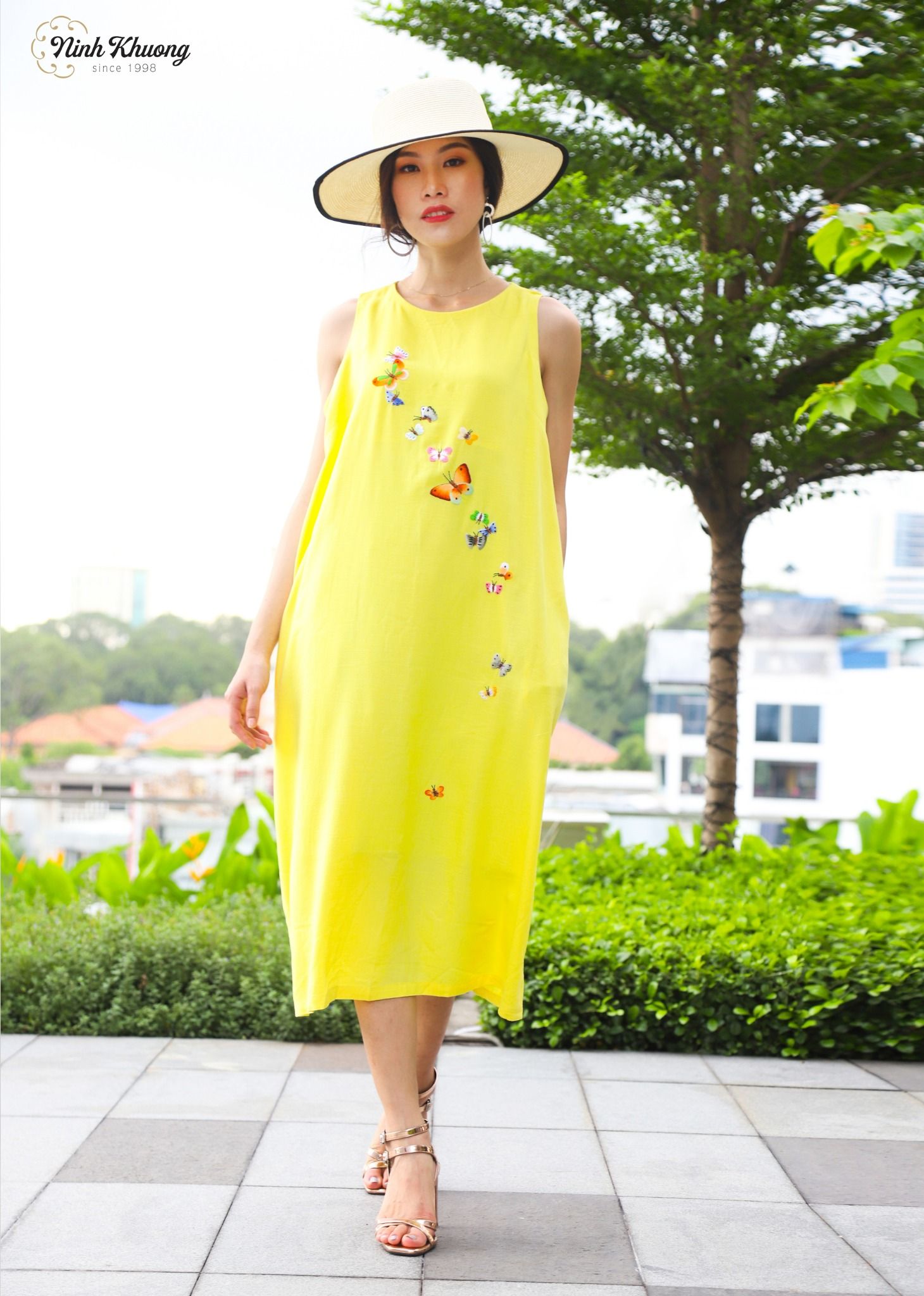 Đầm freesize N100-vàng-MS1-C.H-thêu chuồn chuồn, bươm bướm(040620)