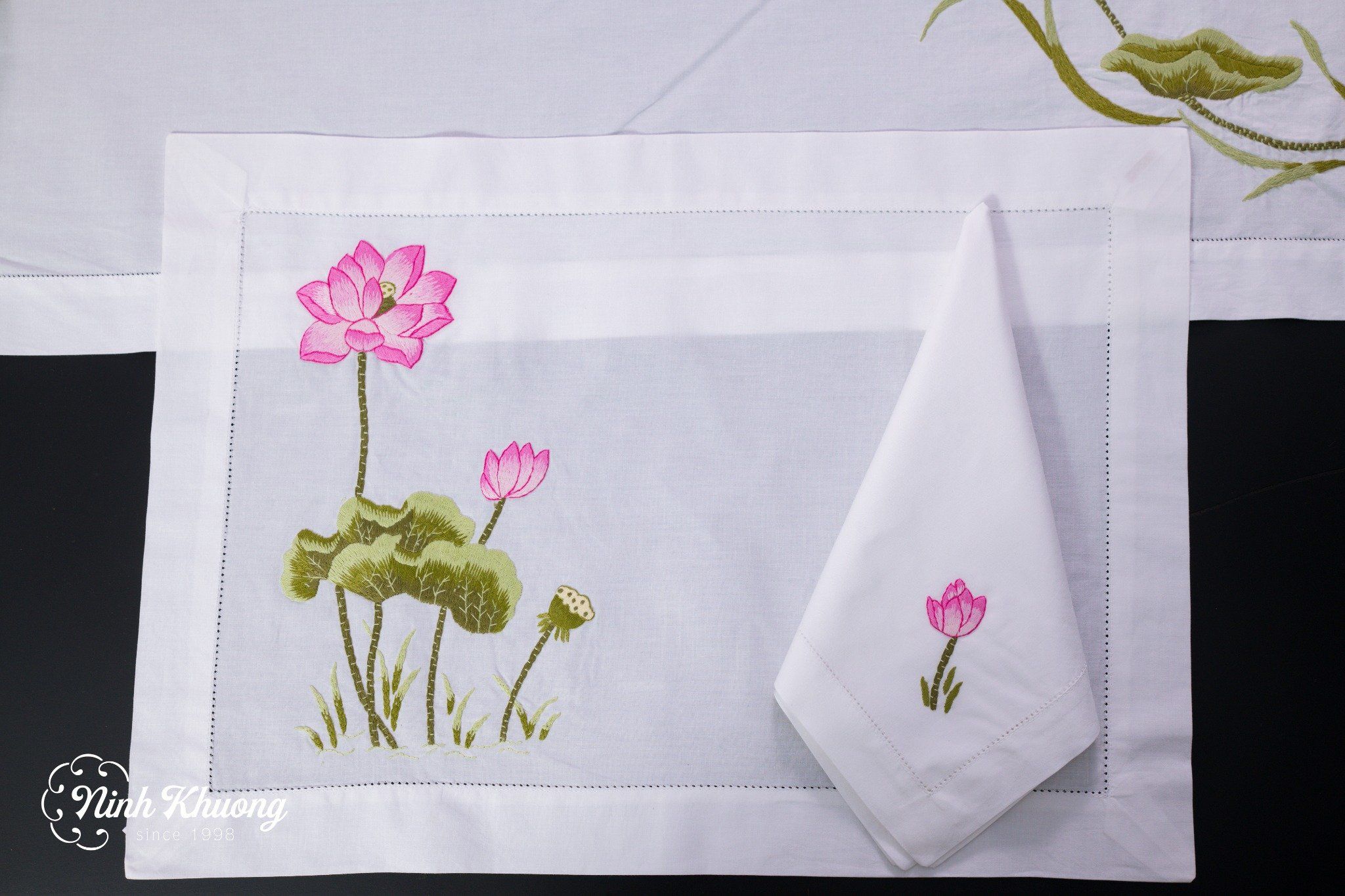 - 01 khăn bàn + 12 khăn ăn https://ninhkhuong.com/products/table-cloth-khan-ban-12k175x300-cip-sen-hong
