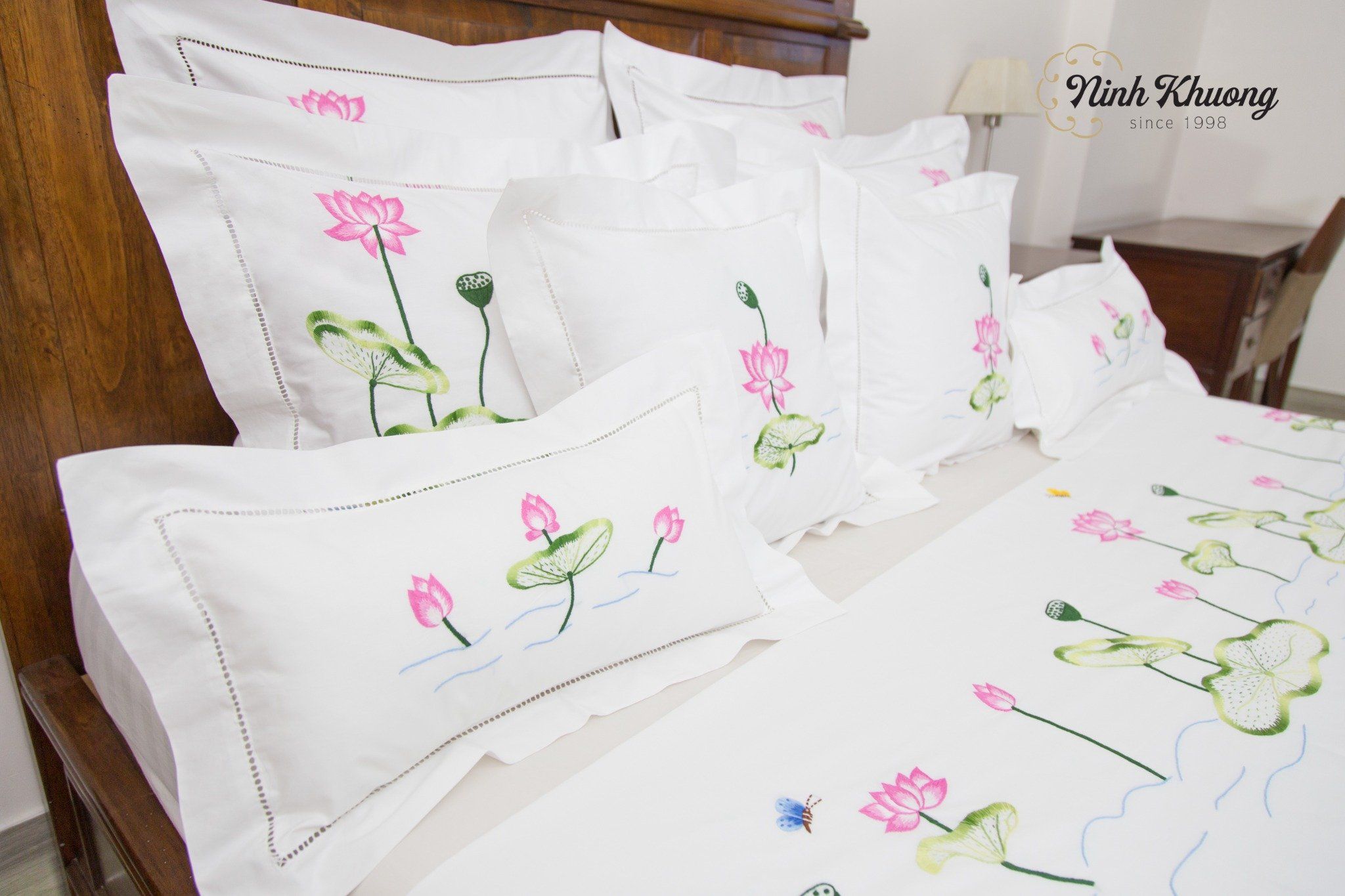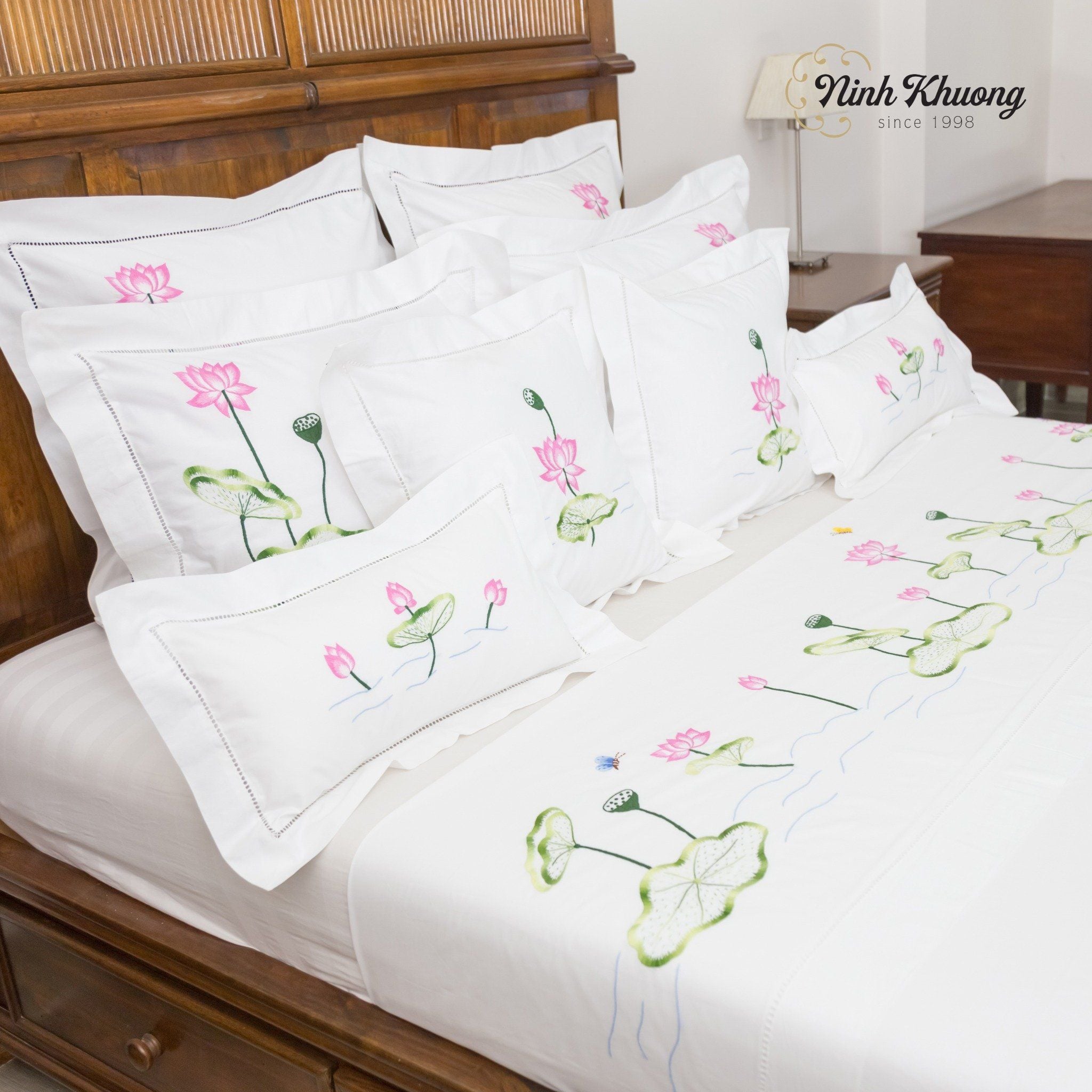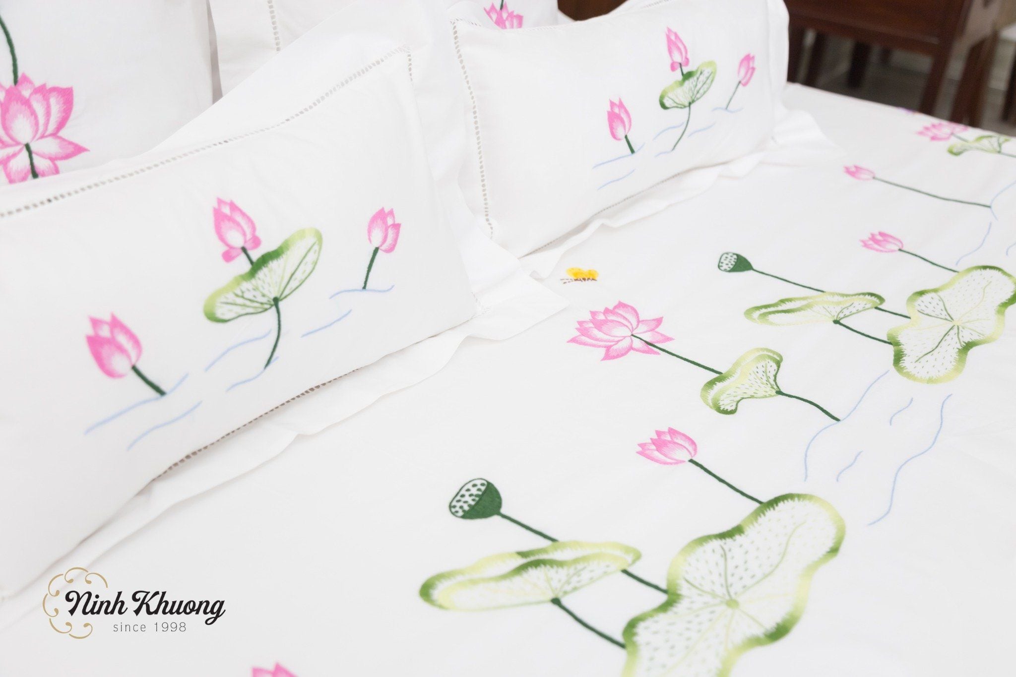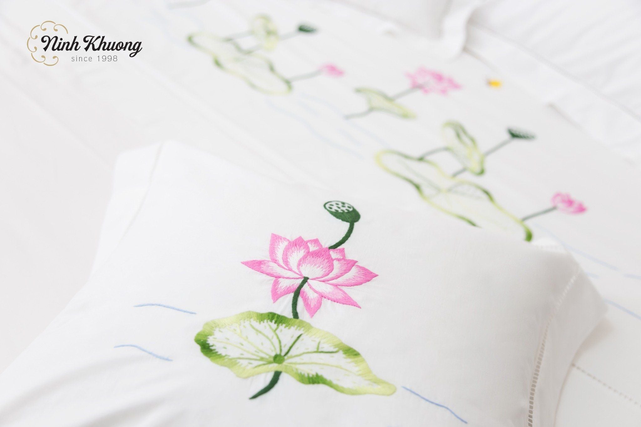 Hộp Quà Kim Bảo là sự kết hợp hoàn hảo giữa nghệ thuật thủ công truyền thống và vẻ đẹp tinh túy của thiên nhiên. Mỗi chiếc khăn bàn hình chữ nhật, khay bộ, khay dài hoặc Combo mền gối được nâng niu thêu tay họa tiết Hoa Sen – loài hoa biểu tượng cho sự thanh khiết, hoàn mỹ và ý chí vươn lên trong văn hóa Á Đông.