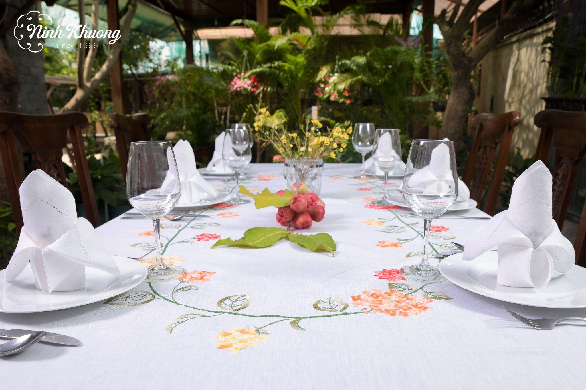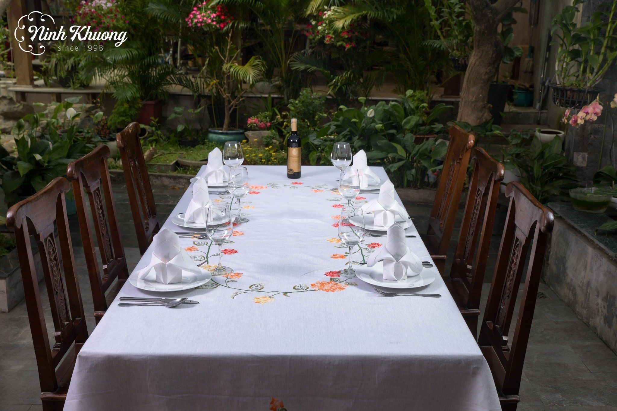- 01 khăn bàn + 08 khăn ăn https://ninhkhuong.com/products/table-cloth-khan-ban-8k175x250-cam-tu-cau-tron