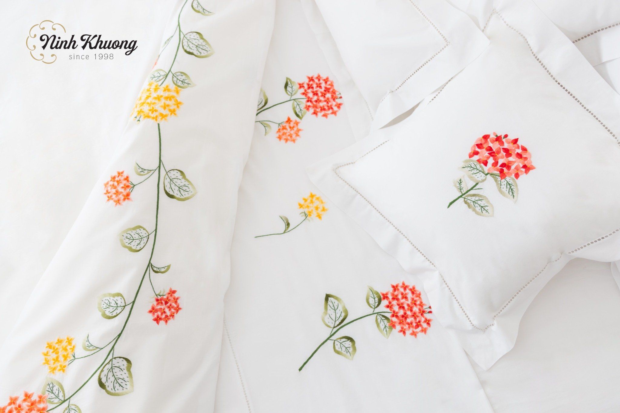Lấy cảm hứng từ những chùm Cẩm Tú Cầu tròn đầy, mỗi sản phẩm được người nghệ nhân kỳ công thêu dệt, không chỉ tái hiện vẻ đẹp tinh tế của loài hoa mà còn gửi gắm thông điệp về một hạnh phúc tròn đầy, sung túc và vĩnh cửu.