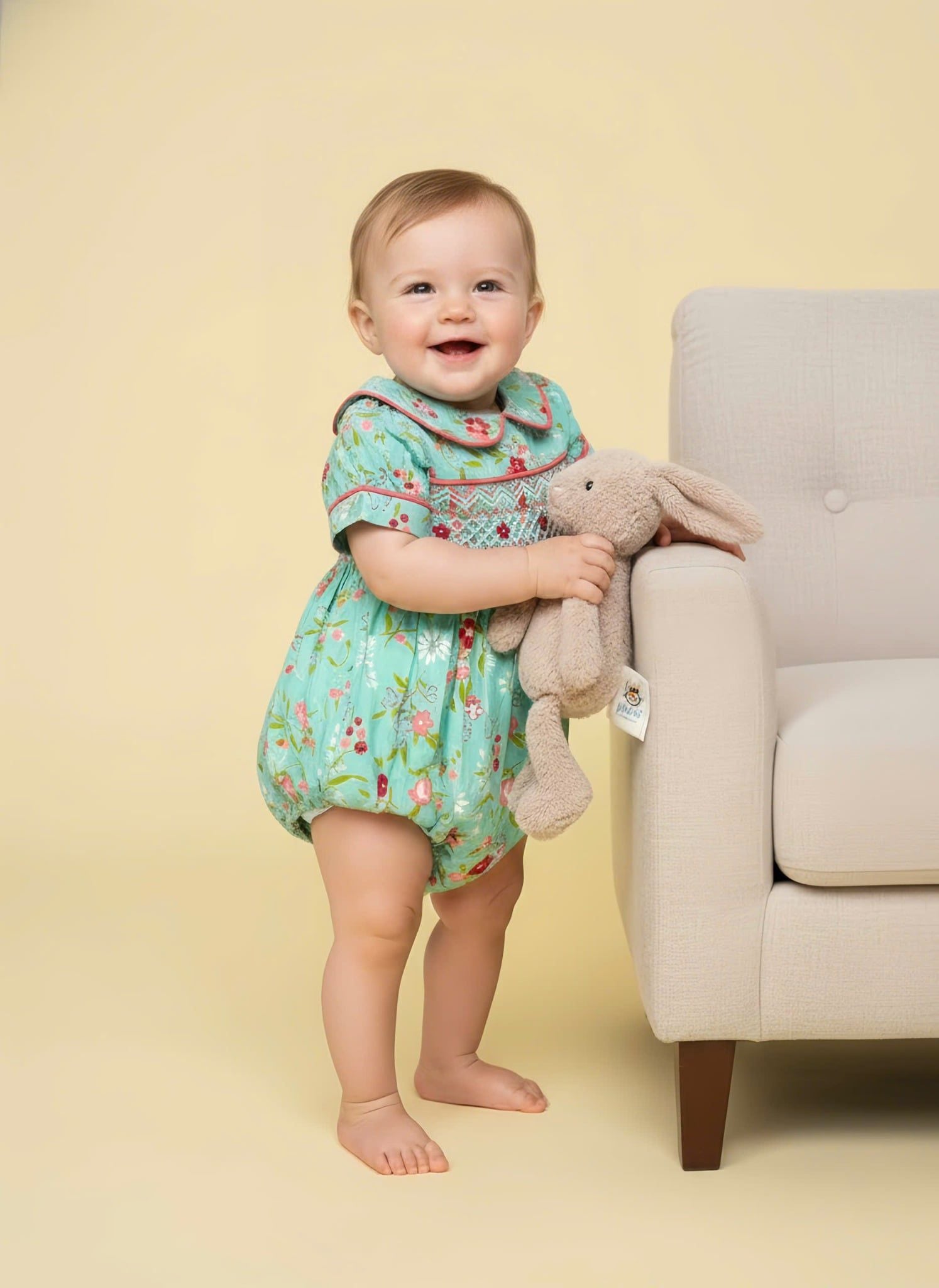 Dòng sản phẩm Liền quần smock cho bé gái là sự kết tinh của nghệ thuật thêu tay truyền thống và phong cách thời trang trẻ em cao cấp. Điểm nhấn nằm ở những đường xếp nếp (smocking) tỉ mỉ tại ngực và cổ áo, tạo nên độ co giãn mềm mại mà vẫn giữ được sự tinh tế, sang trọng cho bé yêu.
