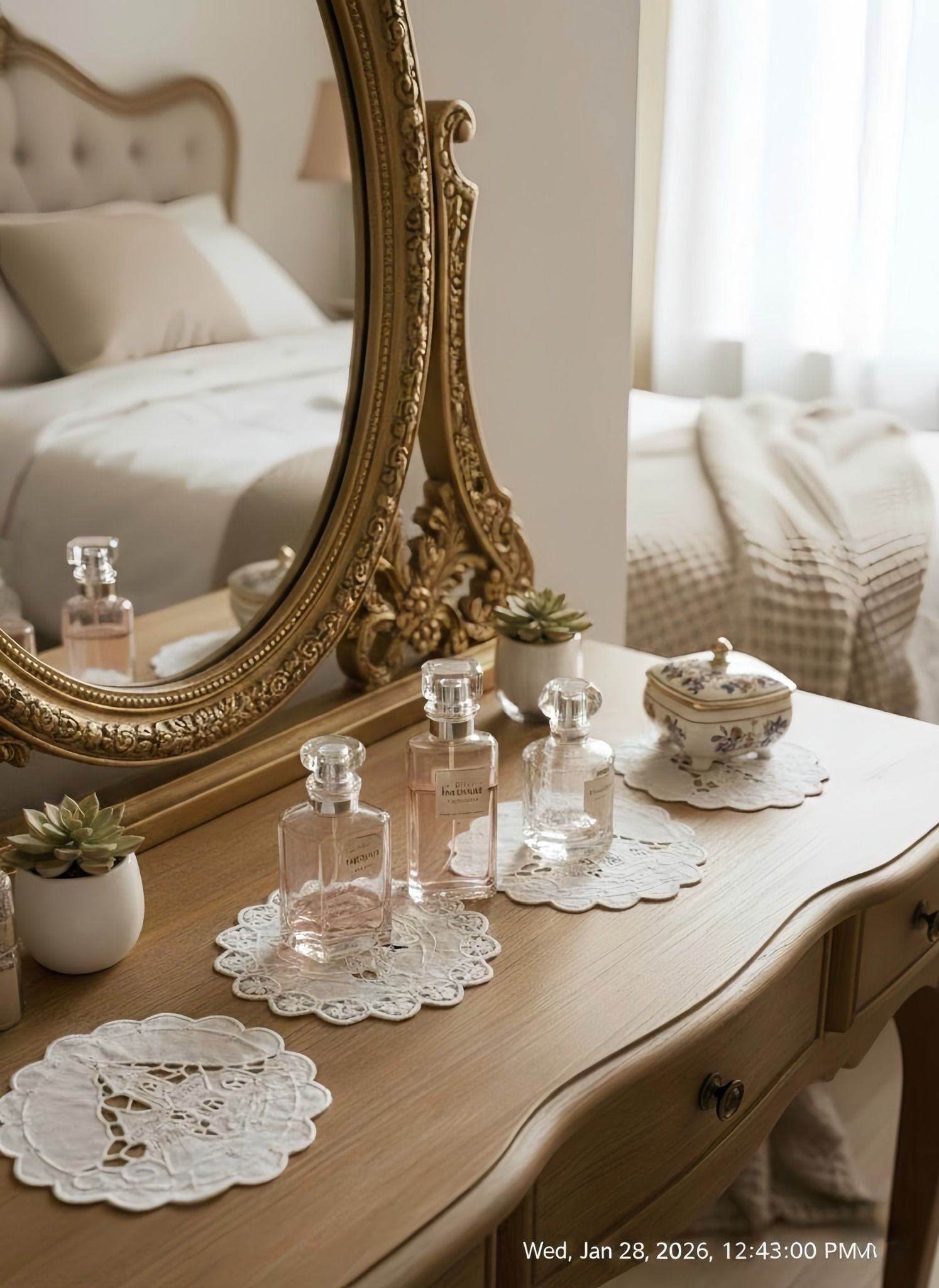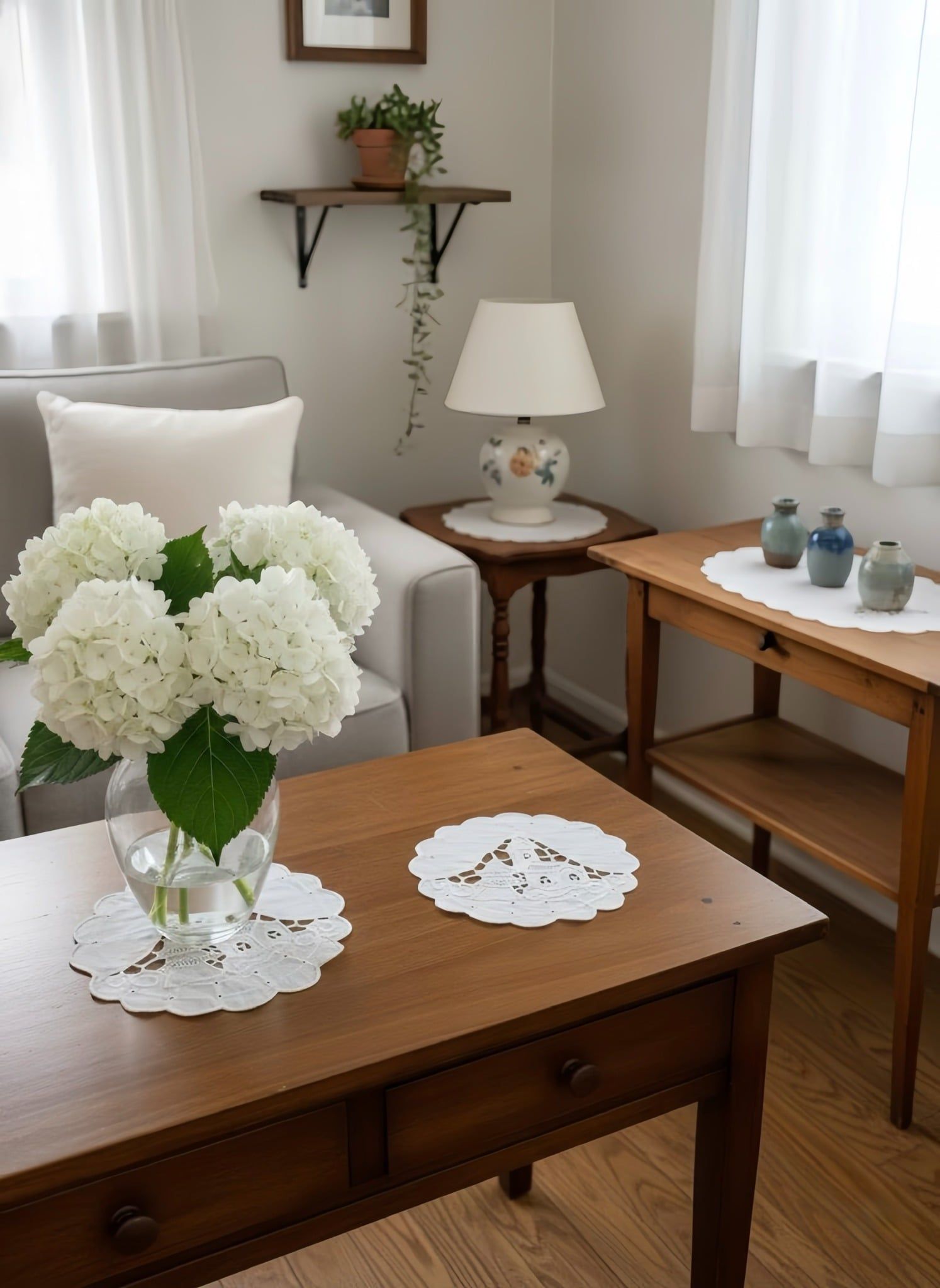 Nghệ thuật thủ công: Tấm lót ly với đường cắt lỗ (eyelet) và thêu tay tỉ mỉ, mang vẻ đẹp cổ điển, lãng mạn như những món đồ kỷ niệm.