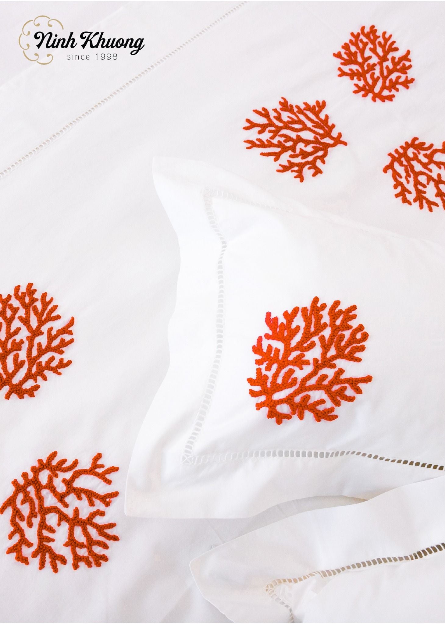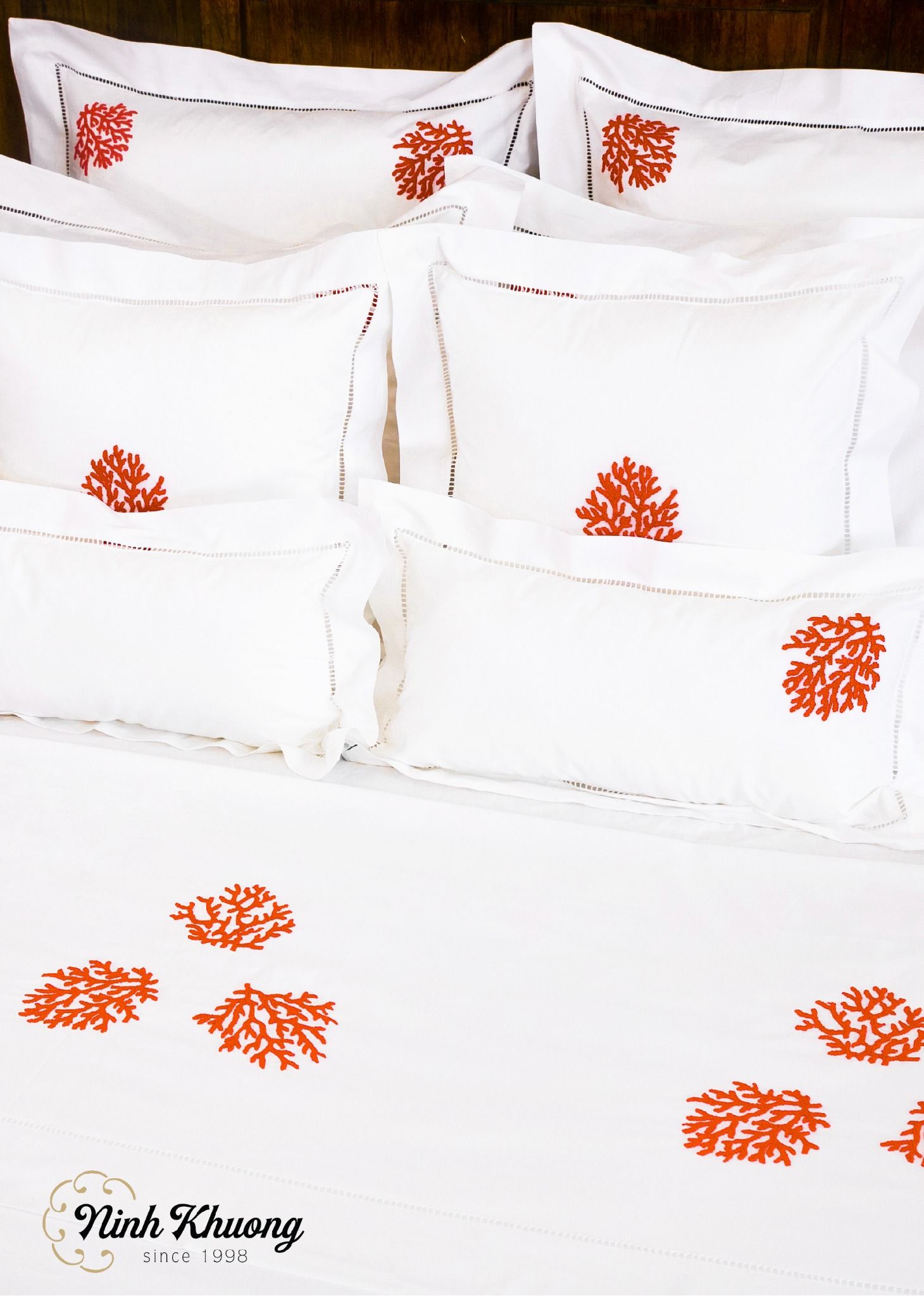 Set Bộc mền,Ga,Gối giường đôi-San hô cam( bọc mền 220x240, Ga 270x320, Gối 50x70, Gối 60x60, Gối 45x45, Gối 25x50/cặp)-rua quấn