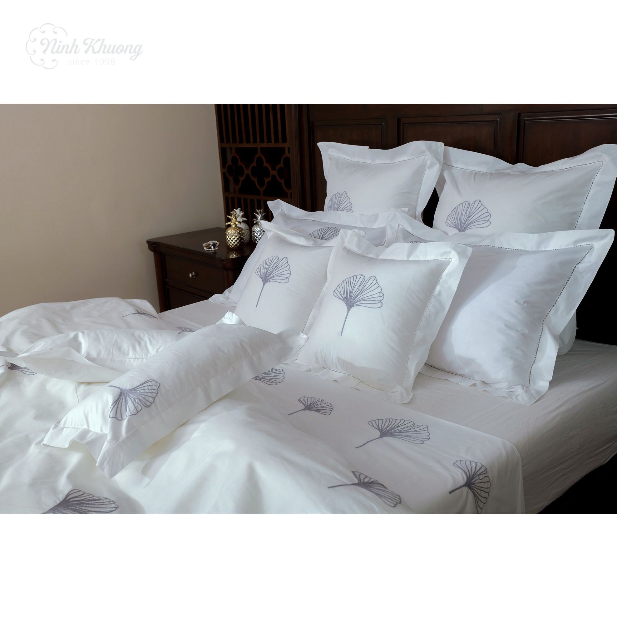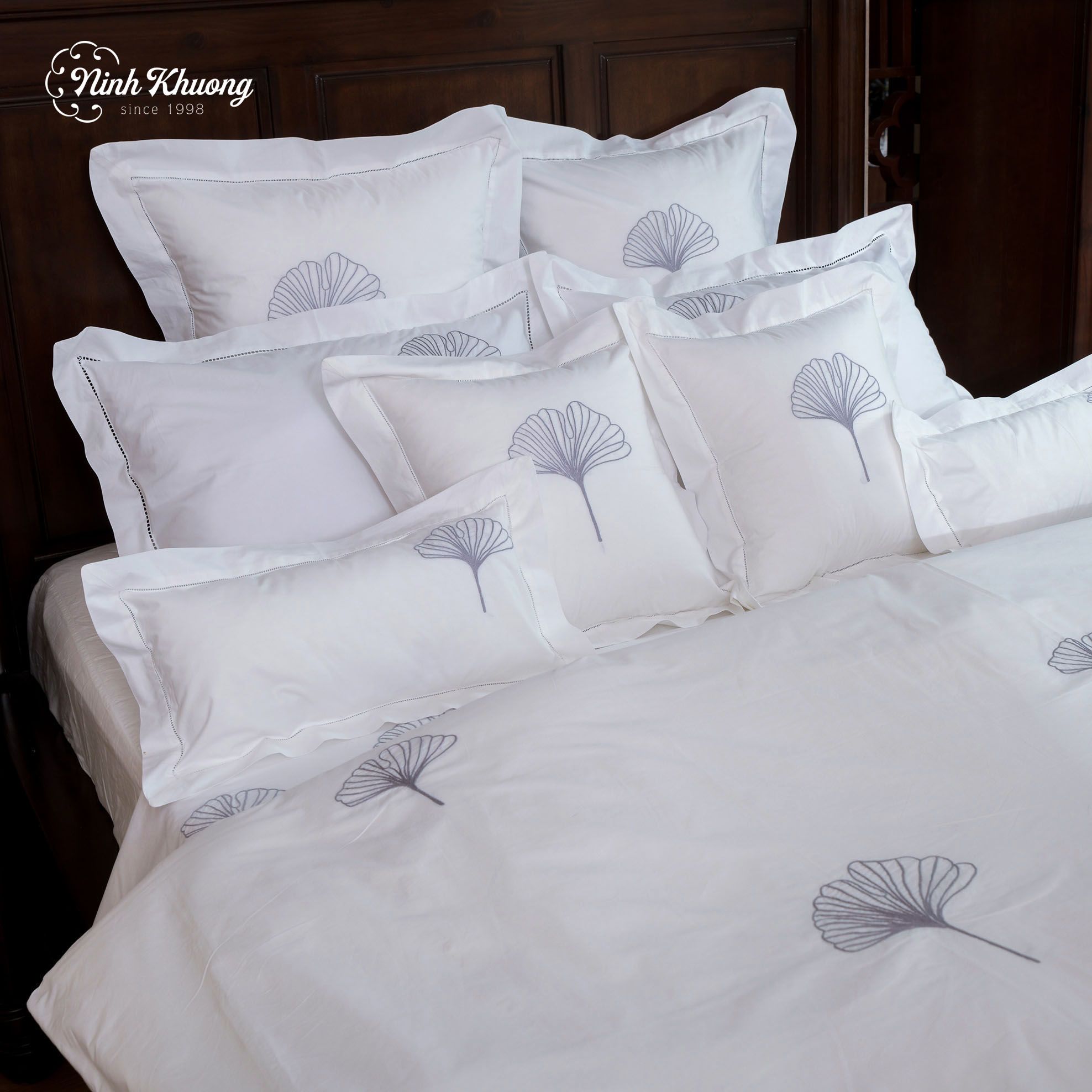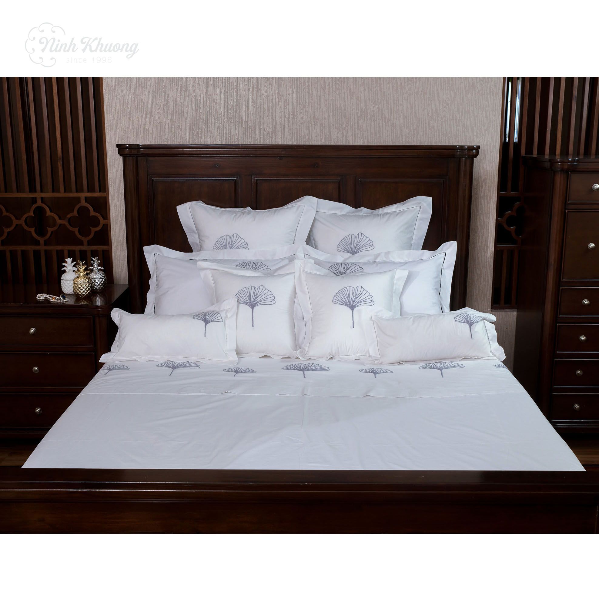 Set Bộc mền,Ga,Gối giường đôi-lá sen( bọc mền 220x240, Ga 270x320, Gối 50x70, Gối 60x60, Gối 45x45, Gối 25x50/cặp)-vải CIP rua quấn