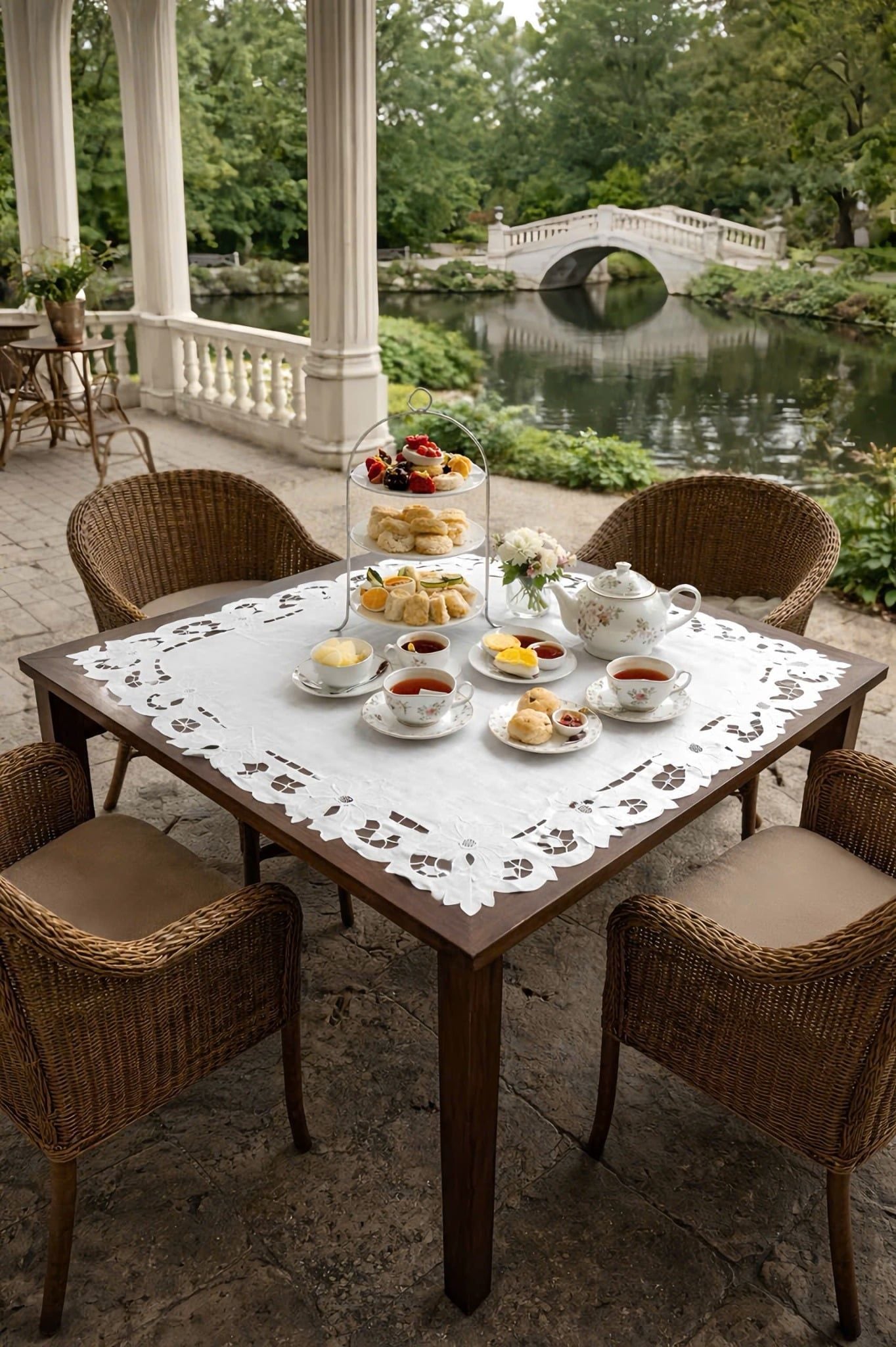 Vẻ đẹp vượt thời gian: Họa tiết thêu trắng trên nền vải trắng (white-on-white) tạo nên vẻ đẹp kín đáo nhưng vô cùng sang trọng, gợi nhớ đến phong cách nội thất châu Âu cổ điển.